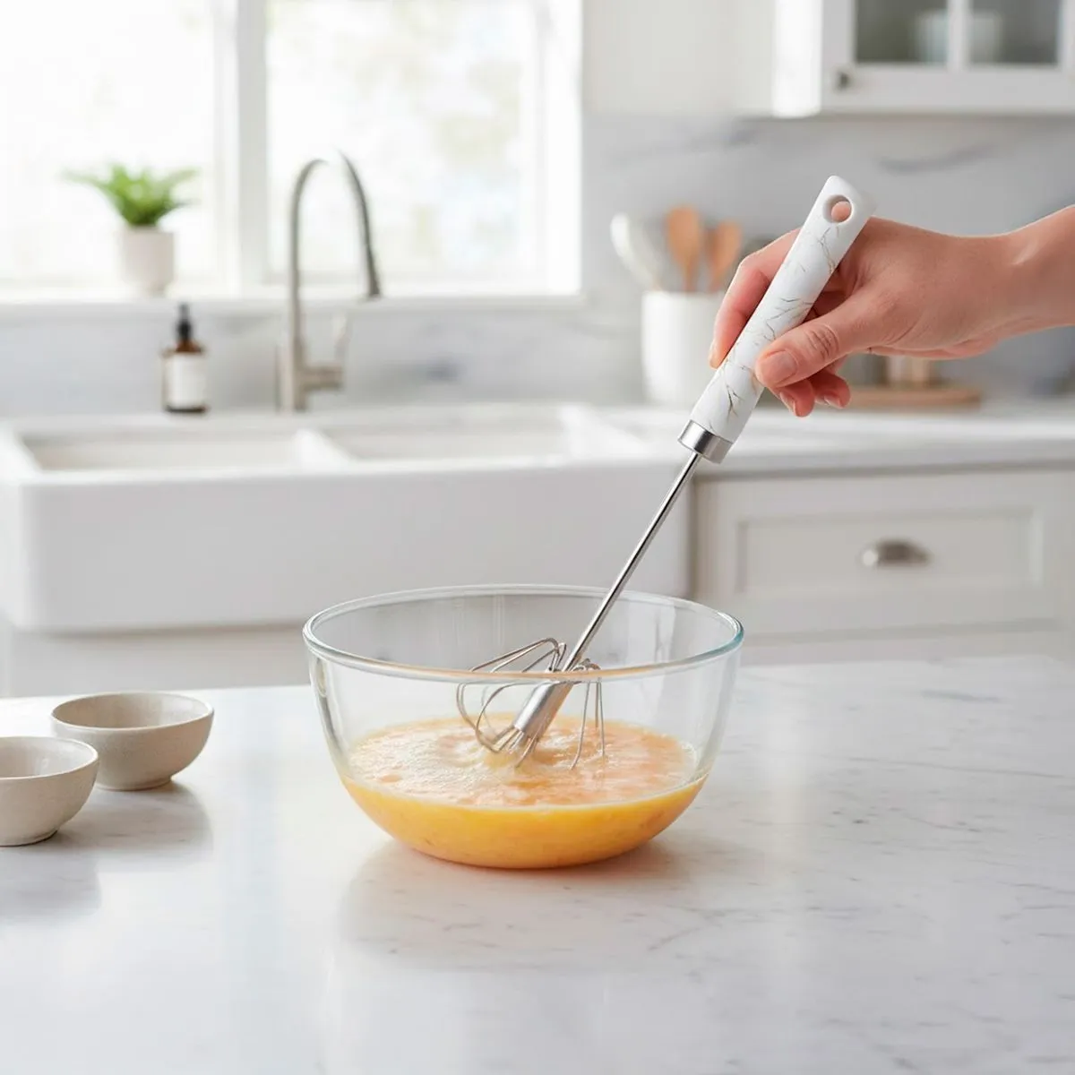 Batidor Manual con Mango de Plástico Blanco Mármol