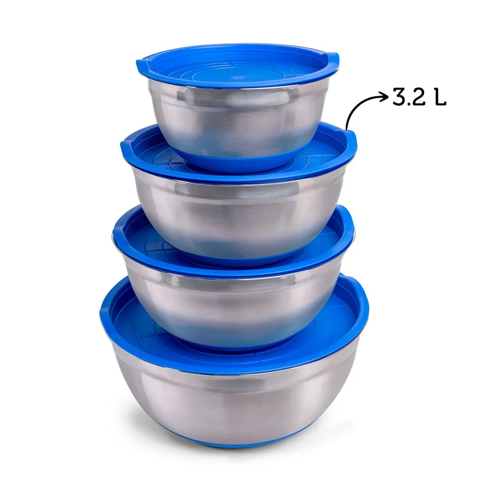 Bowl de Acero Inoxidable con base de silicona y tapa azul 3.2 L