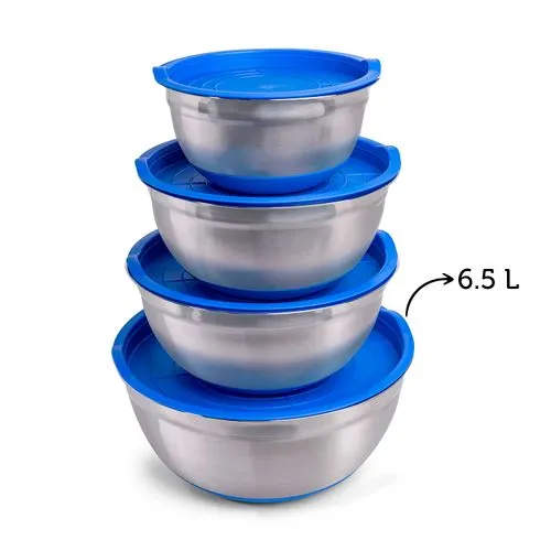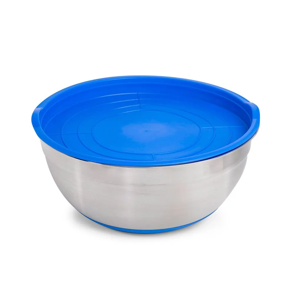 Bowl de Acero Inoxidable con base de silicona y tapa azul 6.5 L