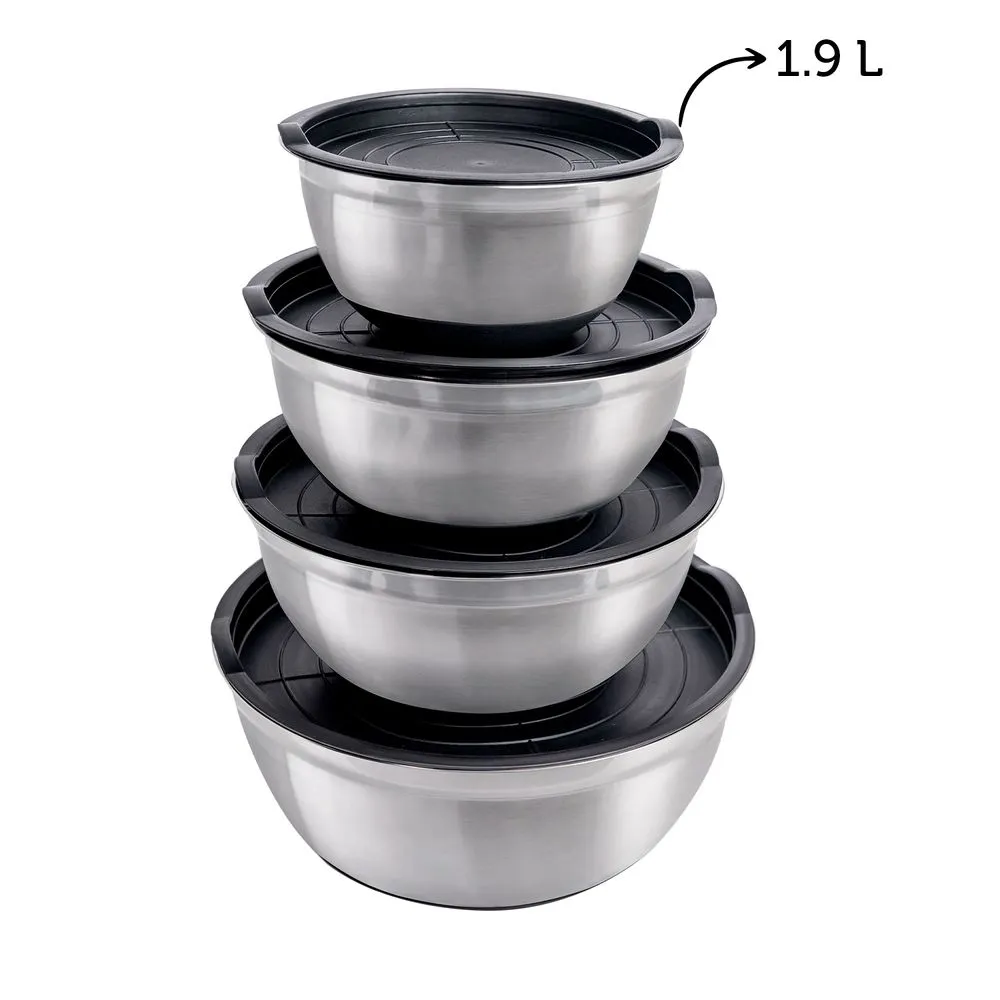 Bowl de Acero Inoxidable con base de silicona y tapa negro 1.9 L