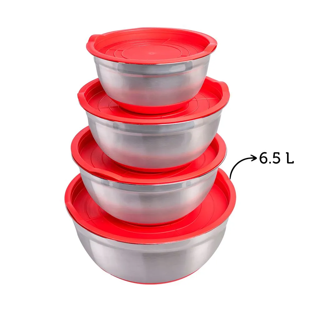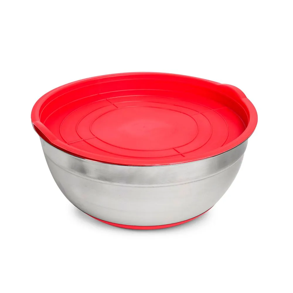 Bowl de Acero Inoxidable con base de silicona y tapa rojo 6.5 L