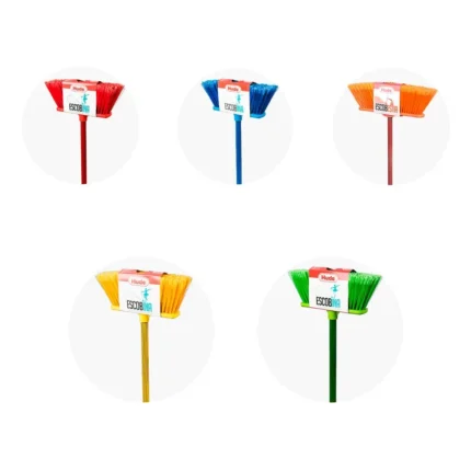 Ideal para interiores. Escoba de forma recta y tamaño mediano, práctica para la limpieza de distintas superficies como laminados, parquet, machimbrados, porcelanatos y cerámicos.