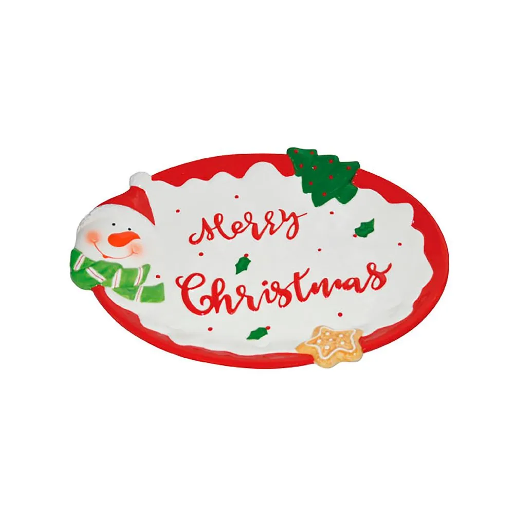 Fuente Oval Navideña de Loza diseño Muñeco de Nieve 11″