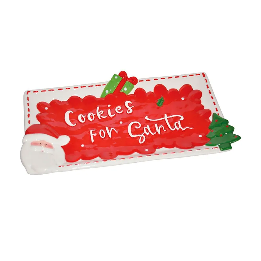 Fuente Rectangular Navideña de Loza Rojo diseño Santa 12″