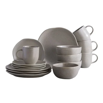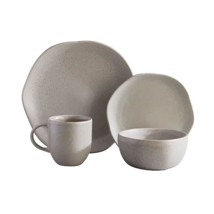 Juego de vajilla Gris Stone de 16 piezas, incluye platos llanos, platos de postre, bowls y tazas. Diseño elegante y funcional, ideal para 4 personas. Perfecto para el hogar o regalos.