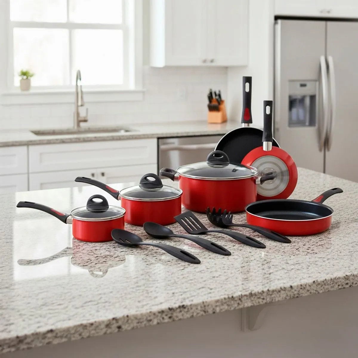 Juego de Ollas Everyday Rojo + Utensilios 13 Piezas