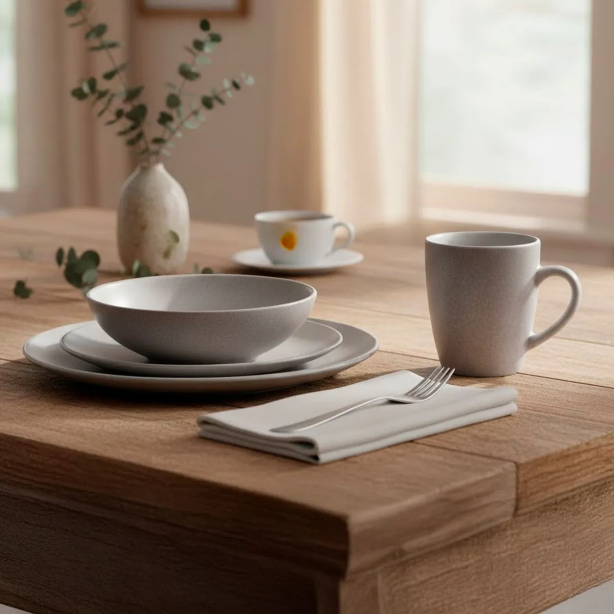 Juego de Vajilla Gris de Loza 16 Piezas