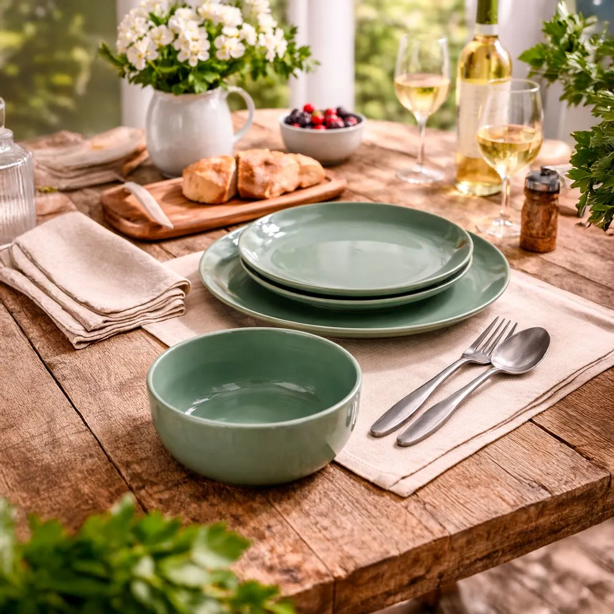 Juego de Vajilla Verde Militar de Loza 18 Piezas