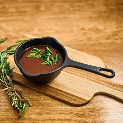 Mini cazuela de hierro fundido esmaltado de 14 cm con tapa de vidrio. Ideal para porciones individuales, con excelente retención de calor para una cocción uniforme y presentación elegante.