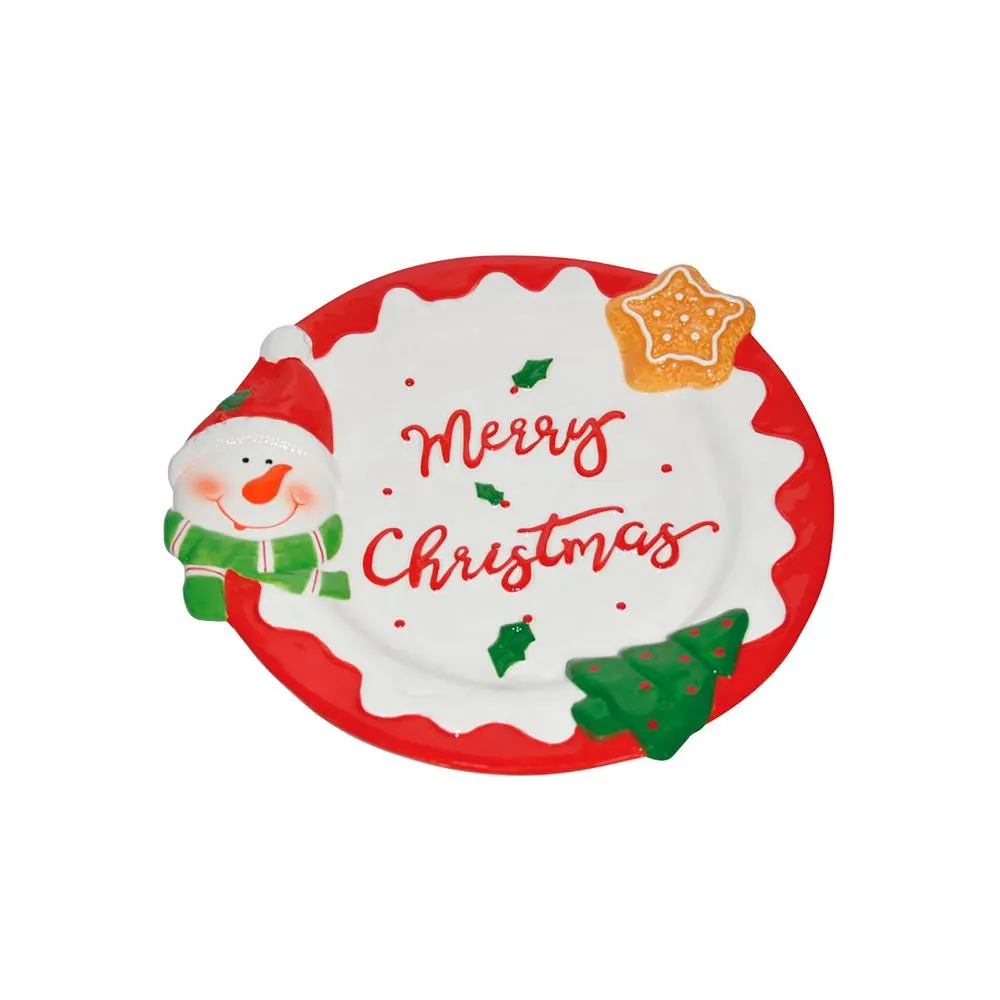Plato Navideño de Loza diseño Muñeco de Nieve 8.5″