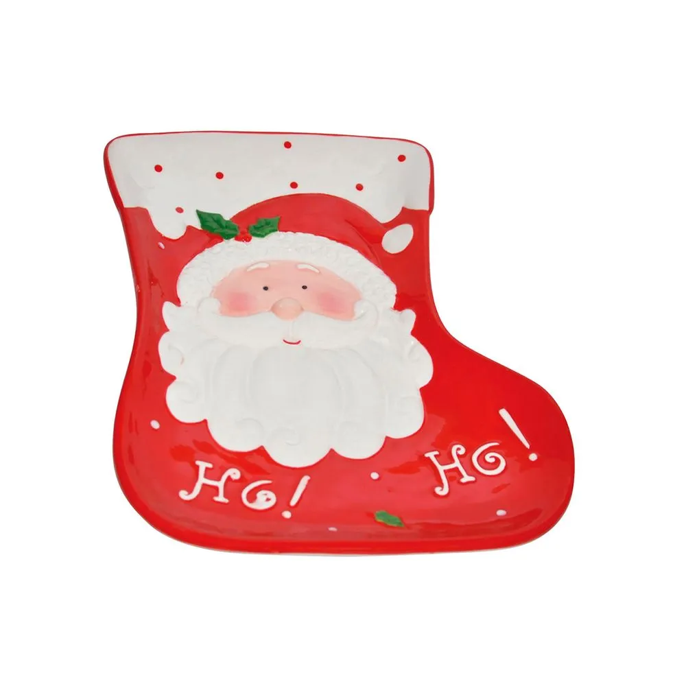 Plato Navideño de Loza Silueta Bota Santa 9.9″