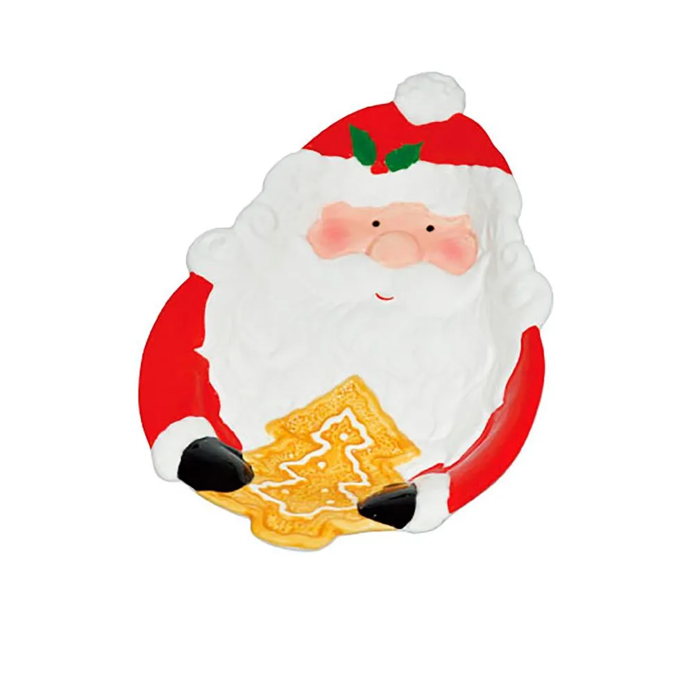 Plato Navideño de Loza silueta Santa 9″