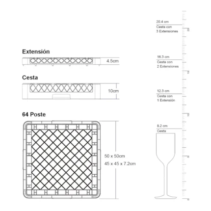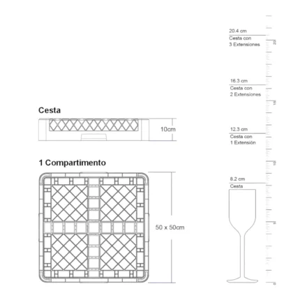 Rack para Vasos 20 Compartimientos/Maquinas Lavavajillas