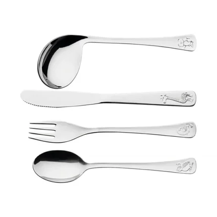| Características | Infant línea de bebé es el más tradicional de Tramontina para los papás y las mamás que buscan productos con la higiene del acero inoxidable. Hecha totalmente de acero inoxidable, no suelta ningún residuo en los alimentos, manteniéndolos sanos. Altamente durable, mantiene las características originales, conservando la belleza, higiene y durabilidad del material. Cubiertos con formato ergonómico y con variación de dibujos, especialmente creados para incentivar y auxiliar el desarrollo de los niños. Terminación brillante, poseen dibujos estampados em alto relieve. Se pueden lavar diariamente en lavavajillas. |
